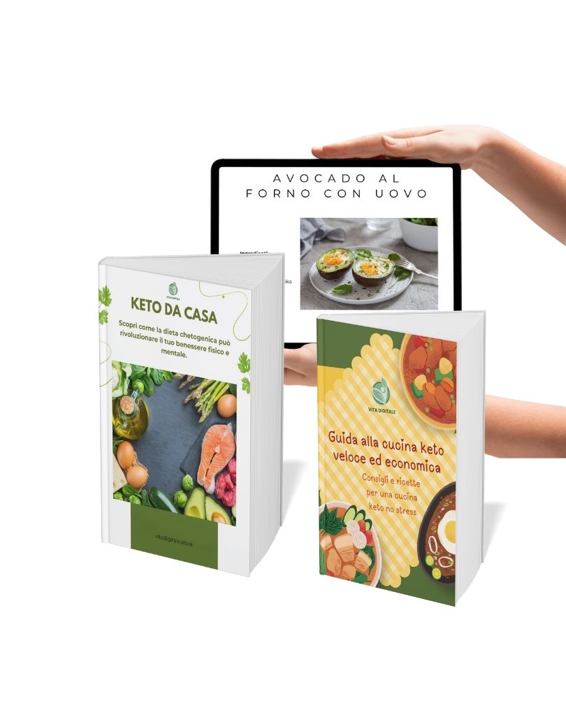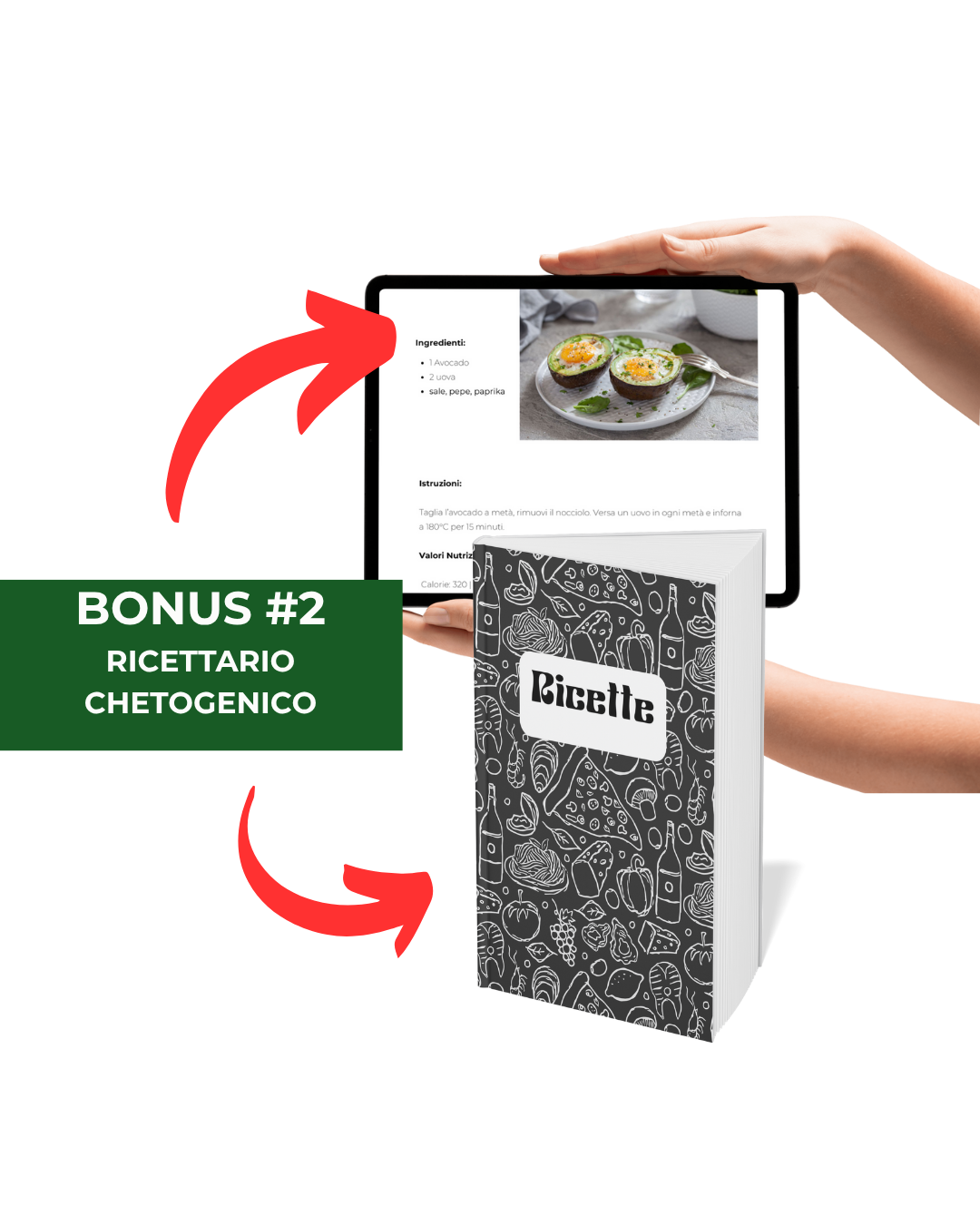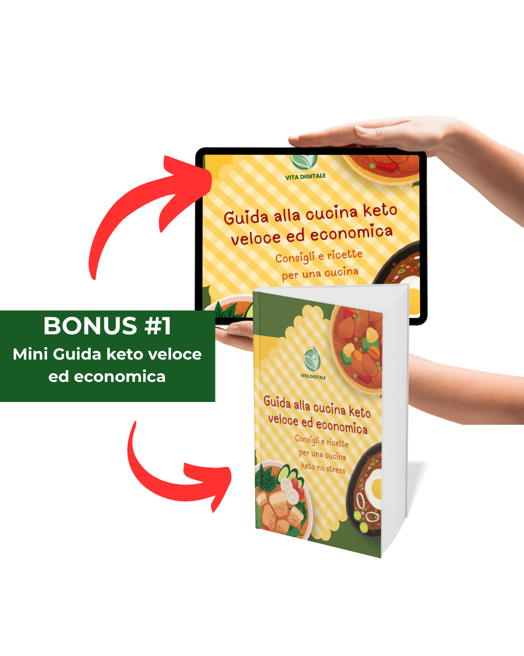 Hai una guida semplice e strutturata, un ricettario gustoso, una Guida alla Cucina Keto Veloce ed Economica , e un metodo collaudato, il tutto a meno del costo di una singola consulenza nutrizionale.